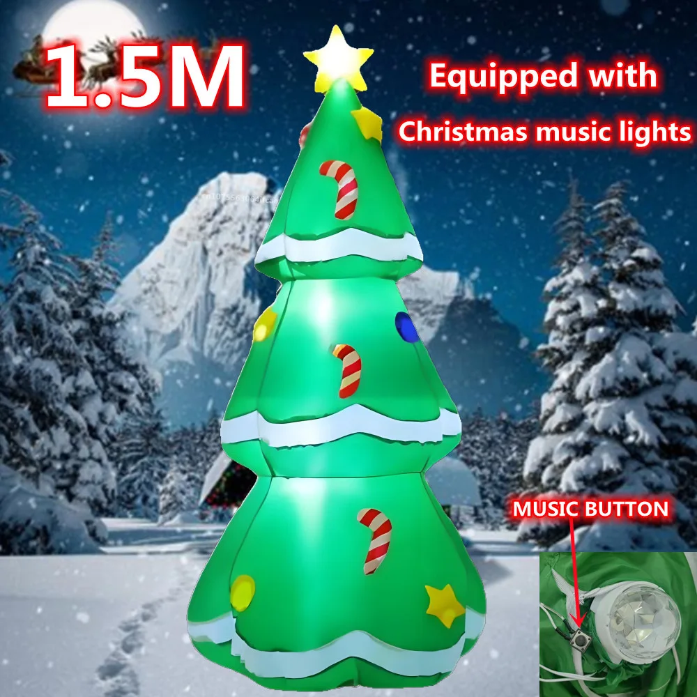 1.5M Christmas Inflatable Xmas Tree Equipped with Christmas Music Lights Outdoor Ornament Gift Party New Year Indoor Decoration