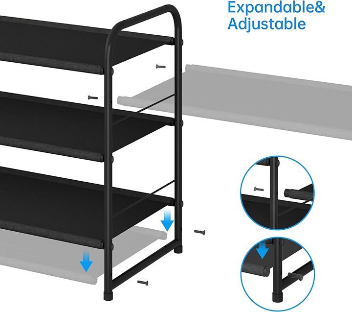 【ADJUSTABLE TIER HEIGH】Easy assembly- Simple clip the shelves into the frame. You can easily adjust the height of shelves accommodates different sizes of shoes. Even the High Boots, you can store it easy