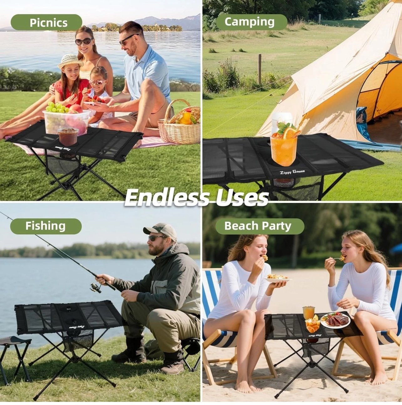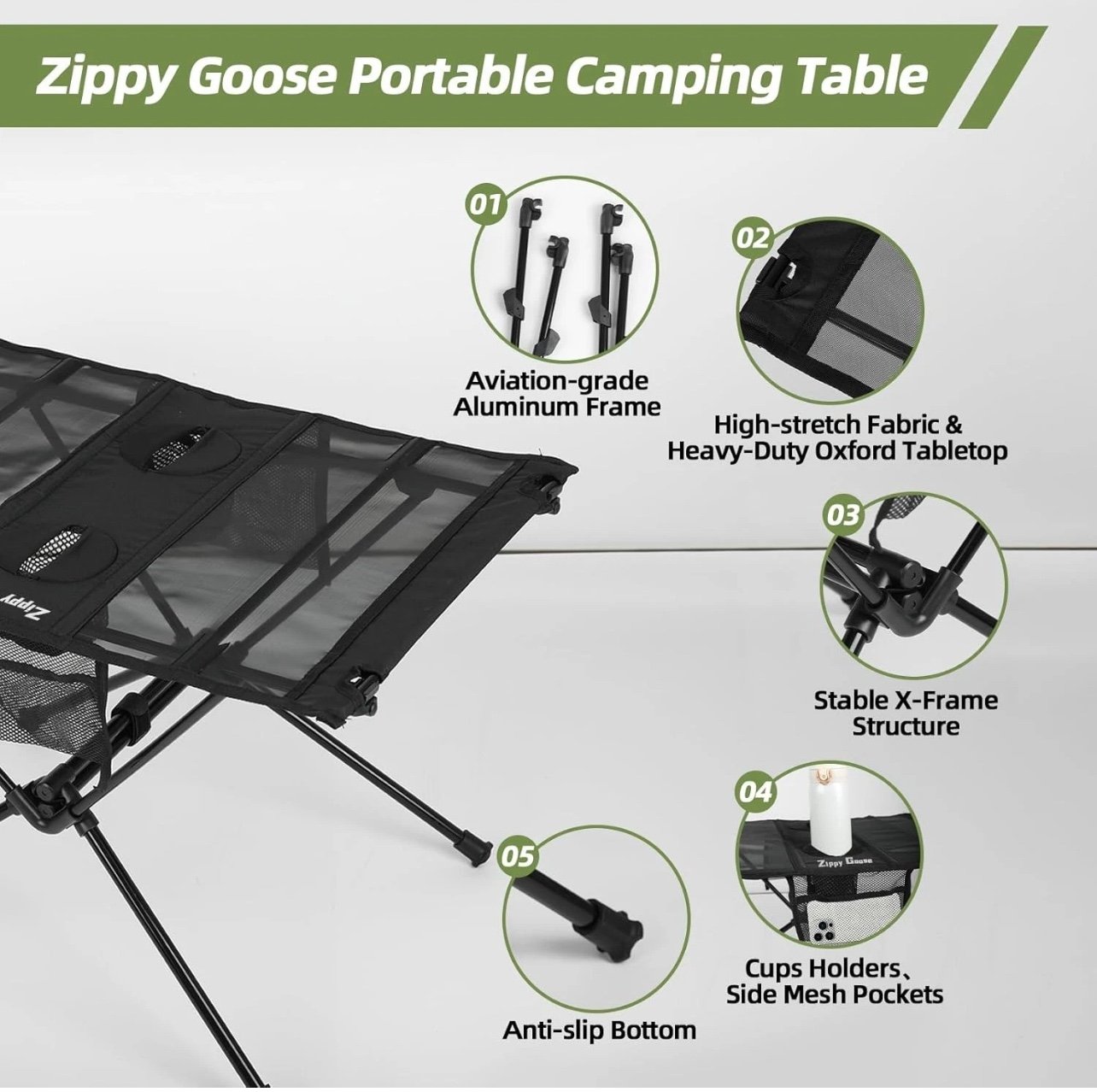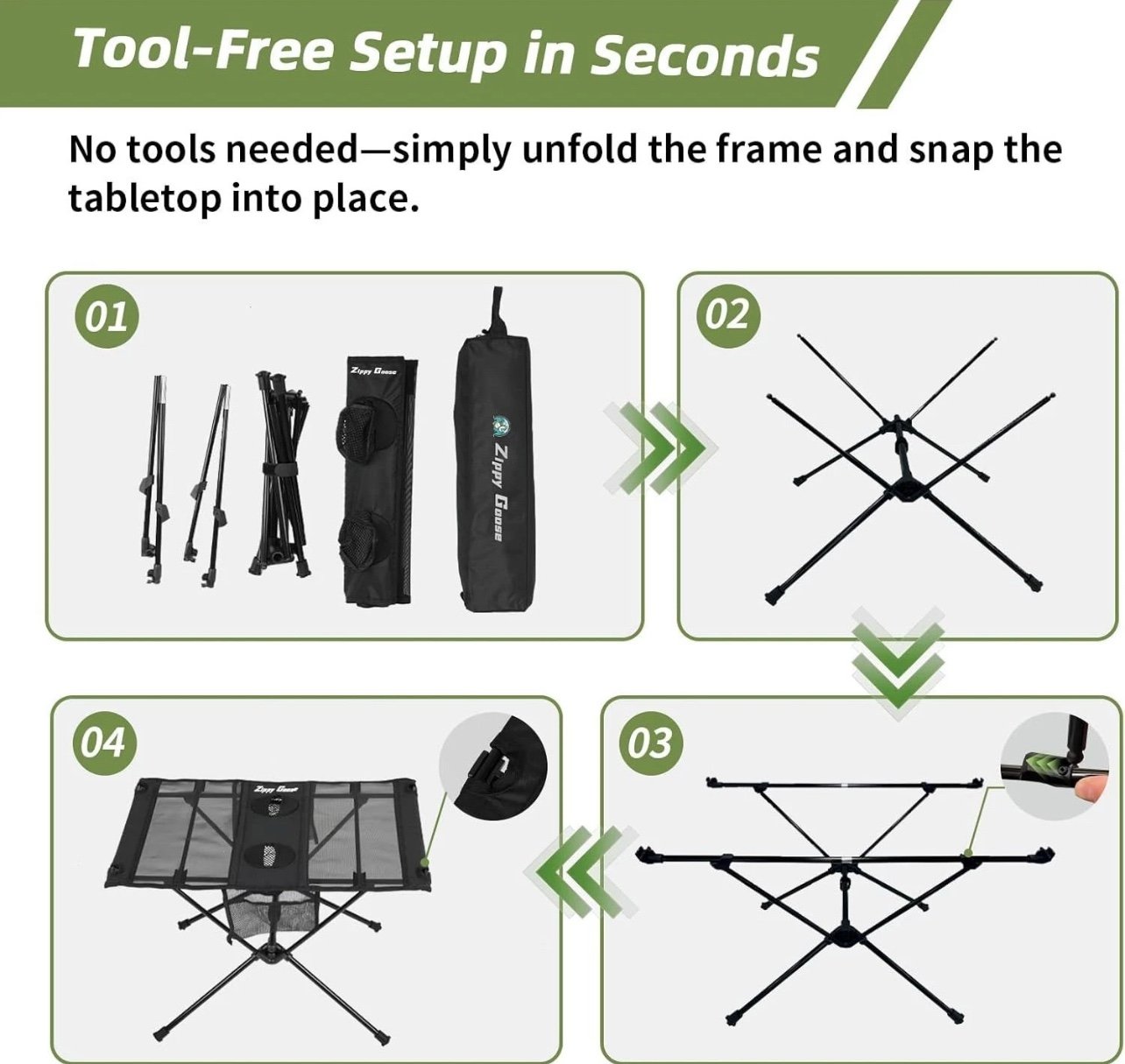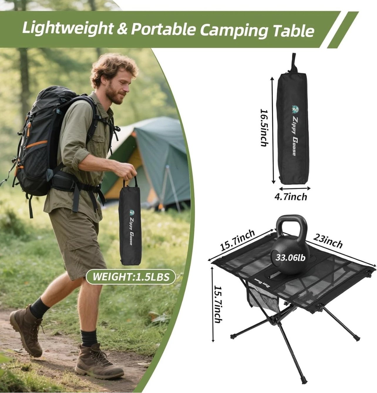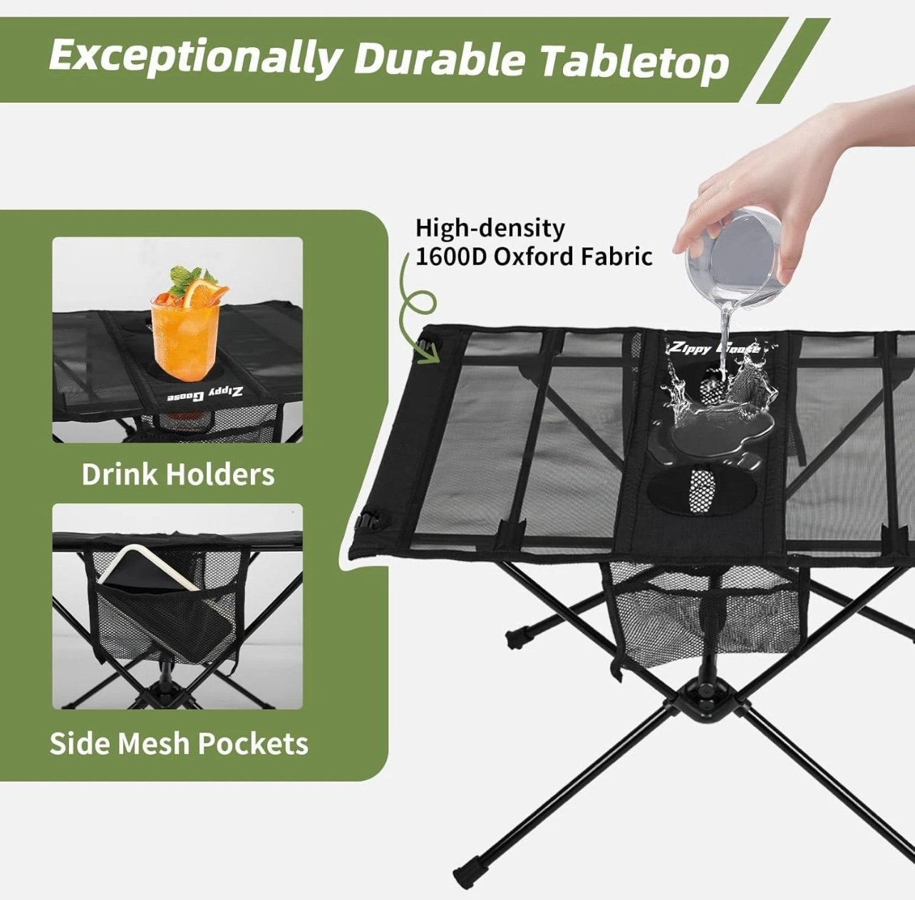 Aviation‑Grade Build for Rugged Use: Built with a 7075 aviation-grade aluminum frame and a detachable tabletop made of high-density stretch fabric and tough 1600D Oxford cloth, this table is both lightweight and exceptionally durable. The surface is water-, heat-, and wear-resistant—perfect for any outdoor environment.