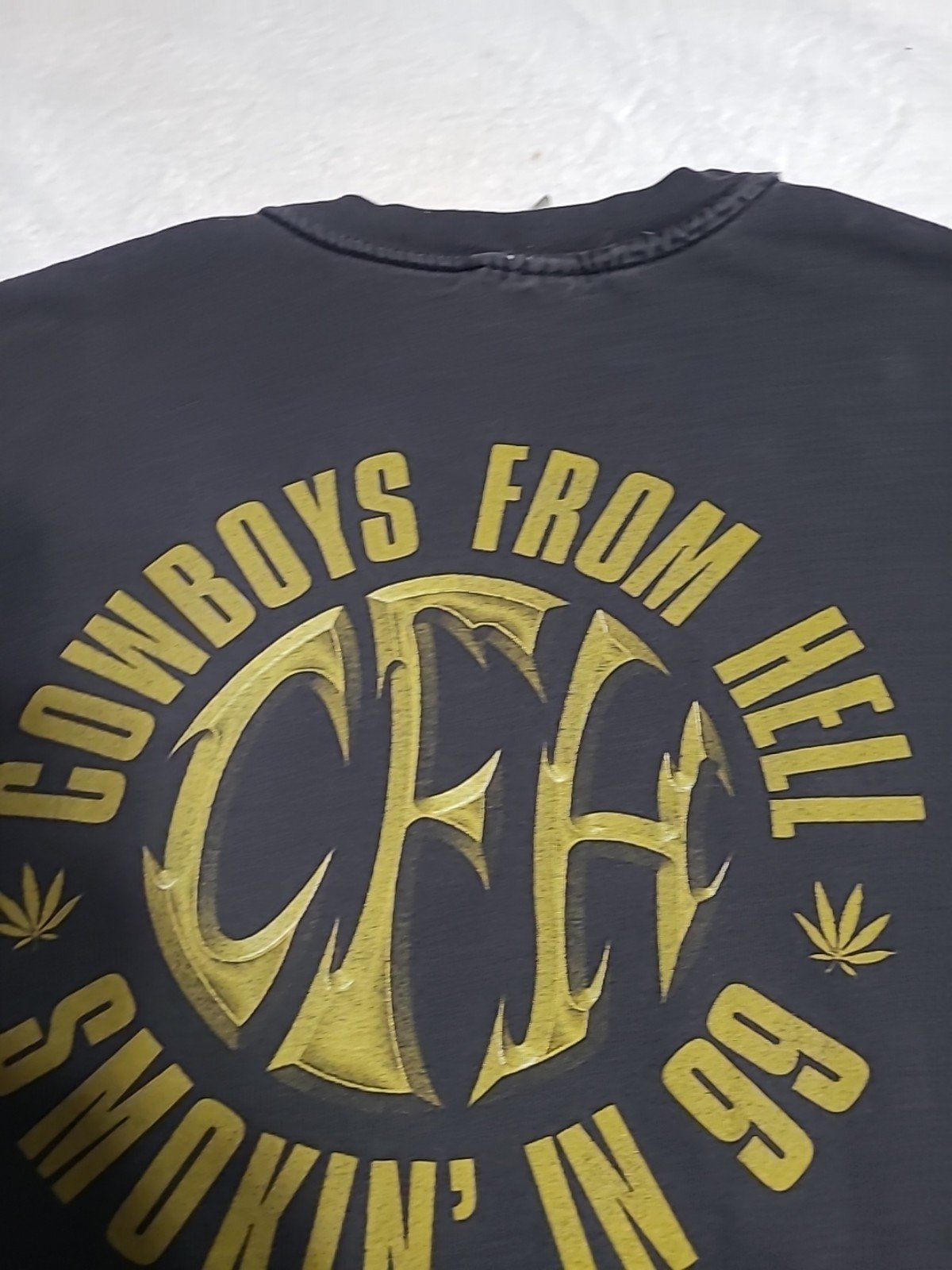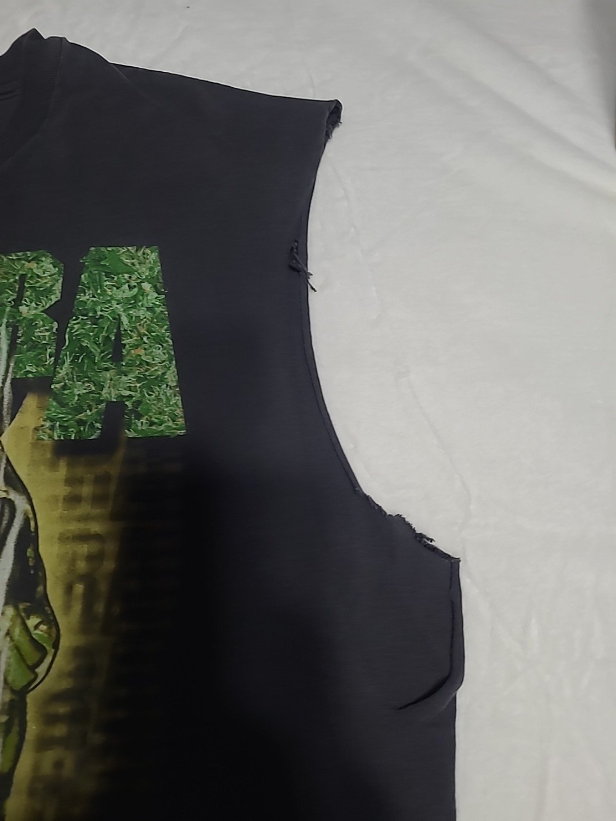 This listing is for a 1999 Rare Vintage Winterland Pantera Smoking In '99 Shirt. Sz. XL. Shirt is preowned. Shirt is sleeveless. Has some stains on the front. Also a stain on back left shoulder.